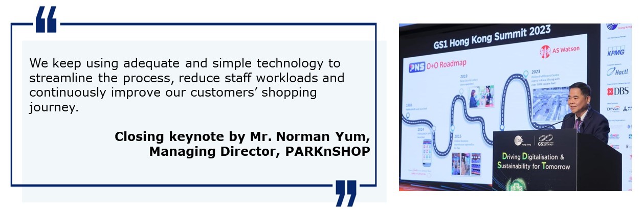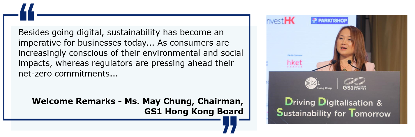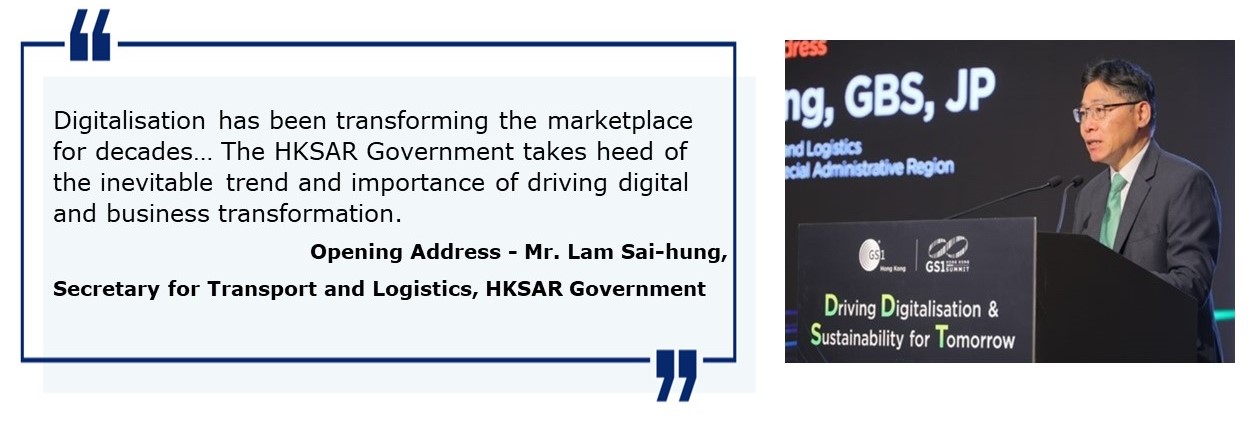 Mr. Paul Chan, Financial Secretary of HKSAR Government, offered a congratulatory message and commended that GS1 HK Summit brings global supply chain and retail industry leaders together for an insightful exchange on the future trends and emerging opportunities.