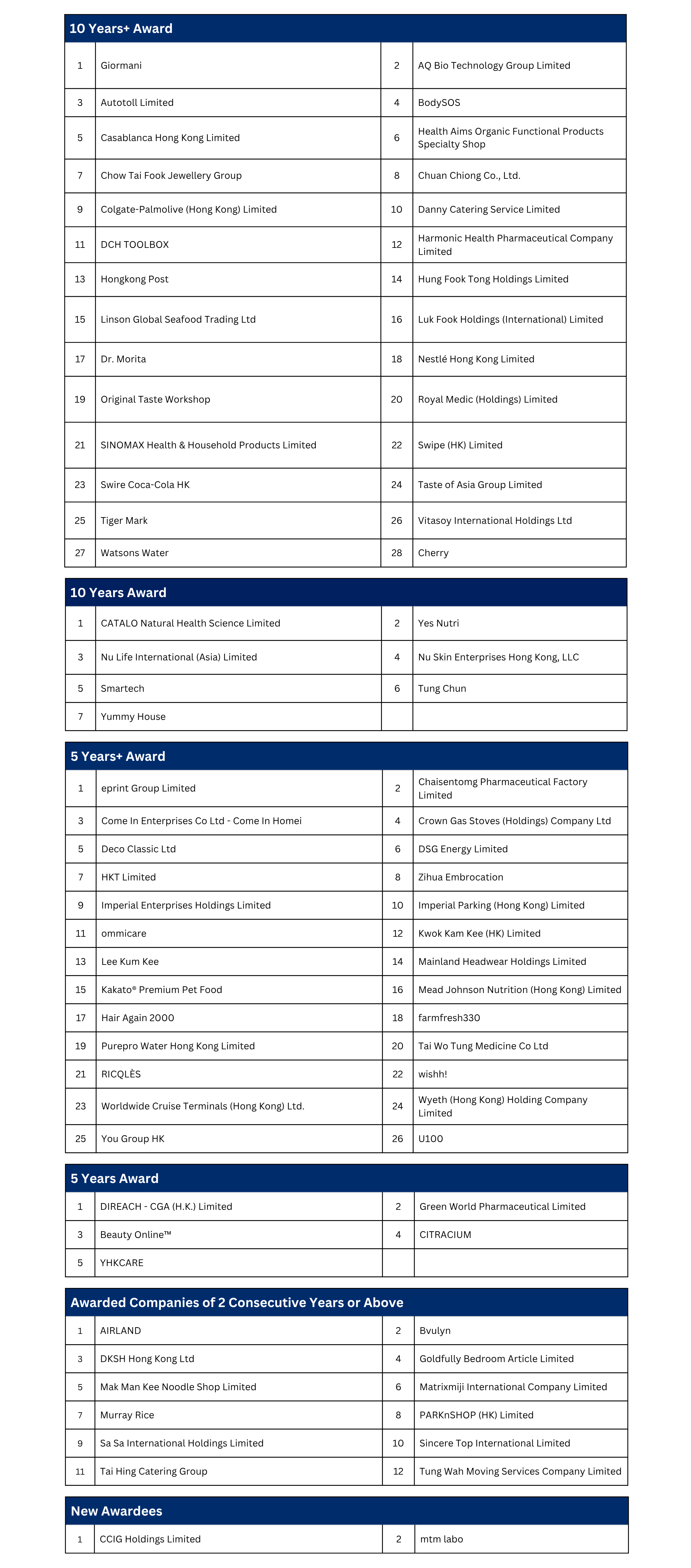 Participating companies were assessed based on 4 core principles: consumer centricity, conforming to commitment, strive for quality and caring for staff via self-assessment, interview, third-party consumer survey and field visits. In addition, GS1 Hong Kong has also taken reference to the internationally acclaimed Efficient Consumer Response (ECR) to evaluate companies’ service and performance on consumer care.